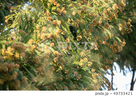 飛散直前のスギ花粉・杉の雄花【花粉症イメージ素材】