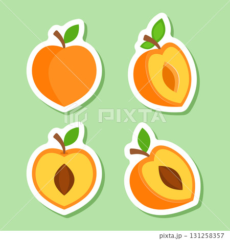 Peach fruit sticker icon set collection in flat style. Apricot vector illustration on isolated background. Nectarine nature snack sign business concept.
