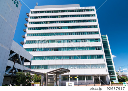 杏林大学病院の南側正面 外来棟 夏の青空 東京都三鷹市