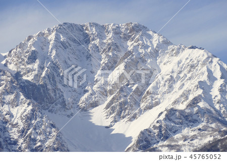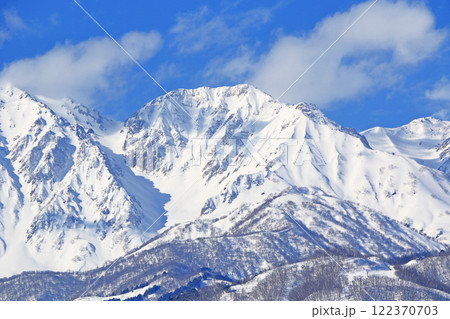 迫力ある早春の白馬鑓ヶ岳・杓子岳と杓子沢氷河 長野県白馬村