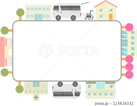 介護タクシーをイメージしたイラストの縁取りフレーム素材