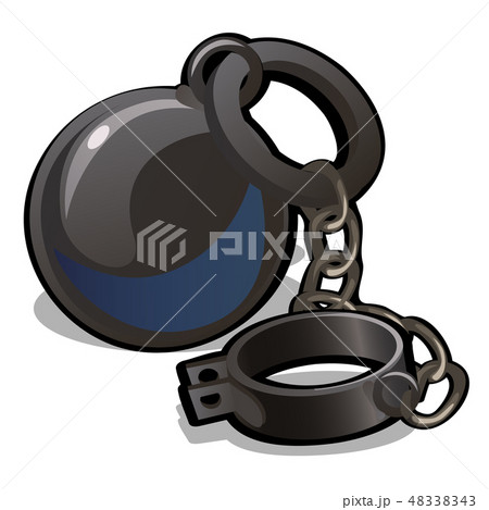 Steel shackles chained to the weight isolated on white background. Vector cartoon close-up