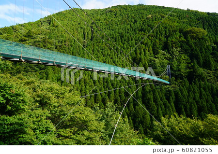 新緑の御岳渓谷 多摩川に架かる吊り橋杣の小橋上部