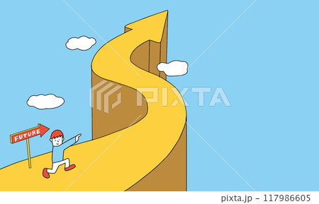 未来に向かって上り坂を進もうとする人のイラストレーション