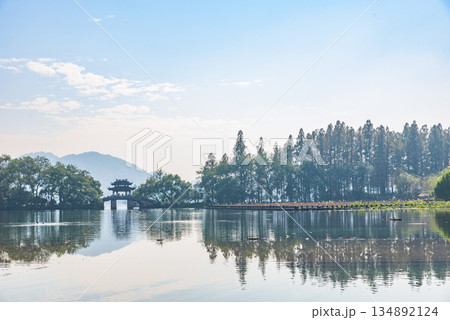 中国杭州の西湖と緑豊かな自然