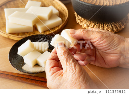 皿に盛られた角餅 四角い餅 東の角餅 切り餅