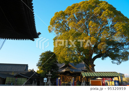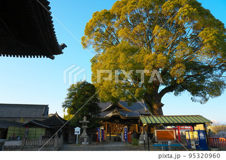 【中国三十三観音霊場】第一番 春の夕日に照らされる西大寺牛玉所殿と大楠3 岡山県岡山市東区