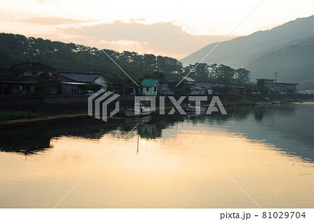 早朝の静寂な肝属川河口付近の風景