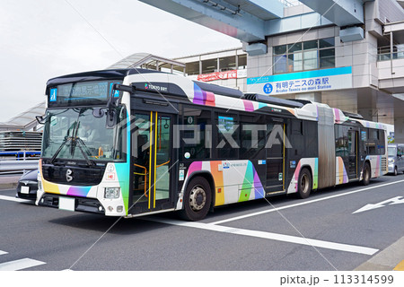 国際展示場駅に停車中の東京BRTの連節バス(いすゞエルガデュオ)