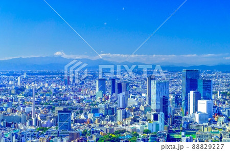 富士山と東京 渋谷駅と神奈川県相模原方面までを望む