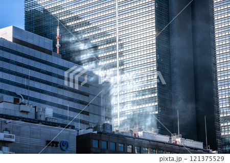 日本の東京都市景観 排熱と太陽光反射で浮かび上がる光景…大手町などのビル街を望む、希望の光=22日