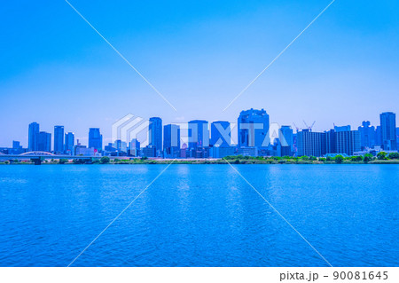 淀川と大阪梅田の高層ビル群
