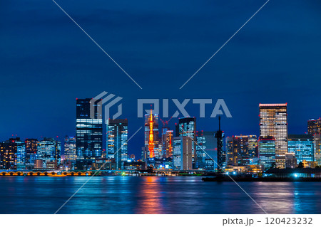 東京都港区、東京湾とビル群の風景