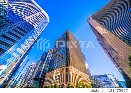 皇居側から見た千代田区丸の内のビル(日比谷通り沿い)