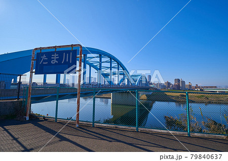 東京都大田区田園調布1丁目付近から丸子橋と多摩川を見る