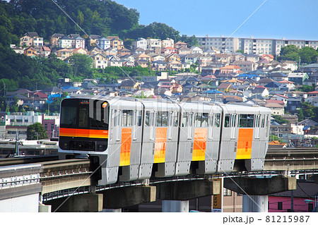 緑の丘陵地を行く多摩モノレール|万願寺にて