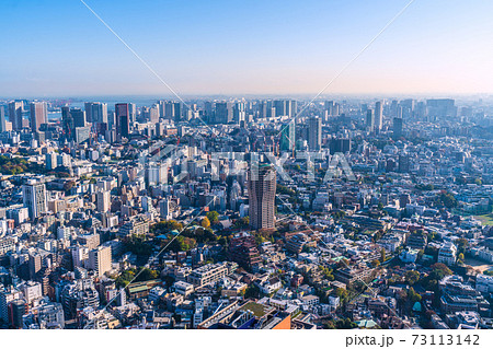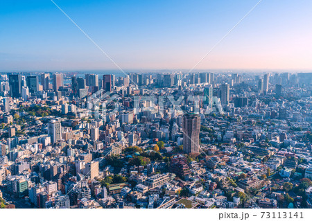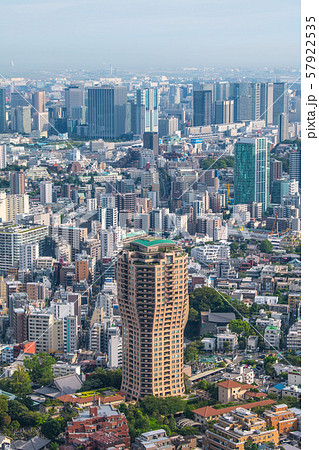日本の東京都市景観 品川方面や元麻布ヒルズフォレストタワーなどを望む