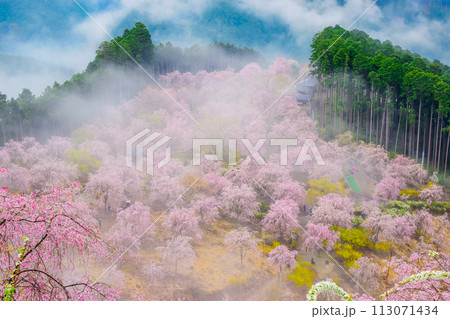 絶景、壮観、満開の枝垂れ桜、奈良東吉野