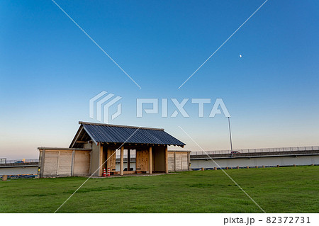 三重県四日市市 くるべ官衙遺跡の長大な建物跡の夕景