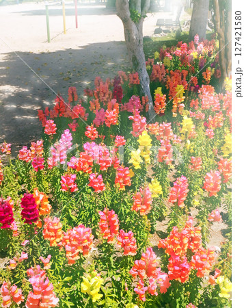 キンギョソウの咲く公園【縦構図】