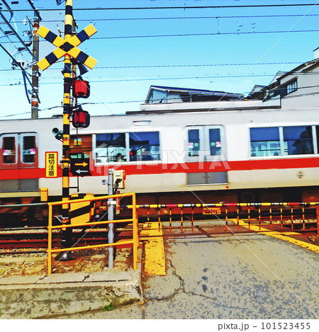 山陽電鉄東垂水踏切 青空背景 【横構図】