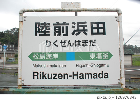仙石線 陸前浜田駅の駅名表示板(宮城県宮城郡利府町)