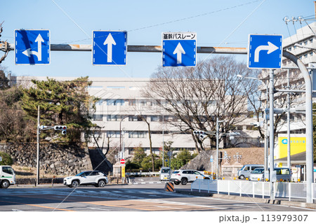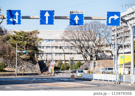 【基幹バスレーン】複数の道路標識がある交差点