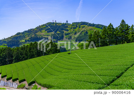 静岡県掛川市にある茶畑と粟ヶ岳山頂の茶の文字