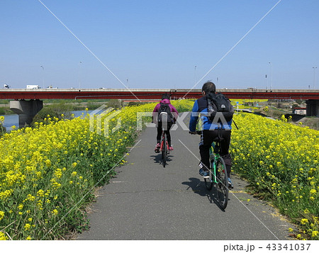 江戸川土手の菜の花(常磐自動車道江戸川橋の下流東岸付近のサイクリングロード)