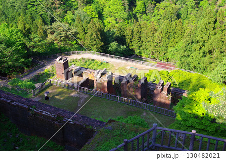 霧雨に煙る東洋のマチュピチュ 別子銅山東平地区の貯鉱庫跡と索道停車場跡全景