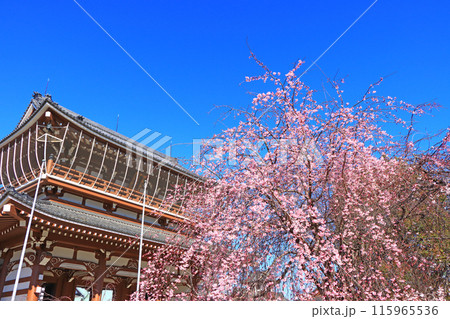 愛知県名古屋市、東別院本堂と桜の風景
