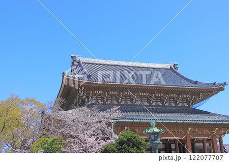 愛知県名古屋市、東別院山門と桜の風景