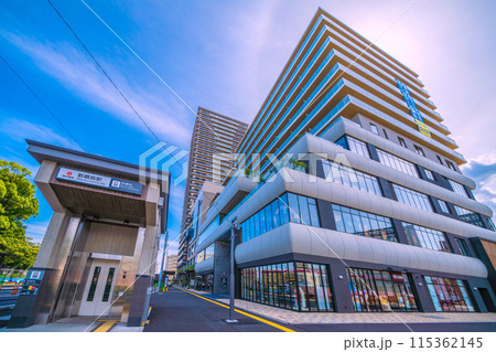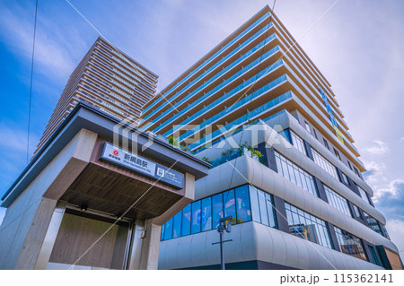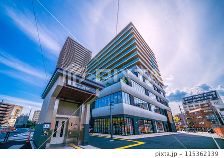 日本の横浜都市景観 東急新横浜線 新綱島駅エレベーターなどを望む。新時代に希望の光=9日
