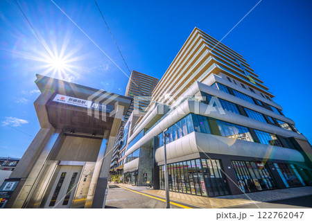 日本の横浜都市景観 東急新横浜線 新綱島駅南口などを望む。新時代に希望の光=令和7年2月9日