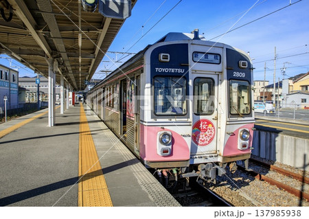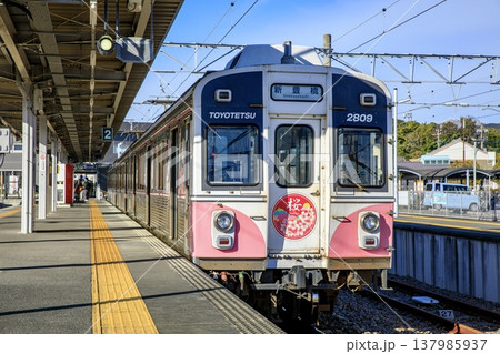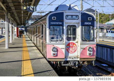 豊橋鉄道、三河田原駅に停車中の1800系電車(桜号)
