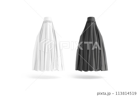 Blank black and white muslim female burqa mockup, front view