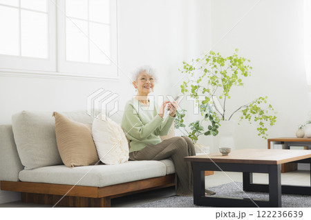 リビングでソファに座る中高年女性