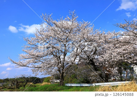 犬山城と桜 木曽川の堤防道路の歩道から。