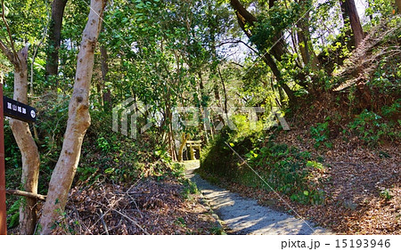 マイナー観光スポット観光案内・熊野神社の鳥居と韮山城跡に続く山道・横位置