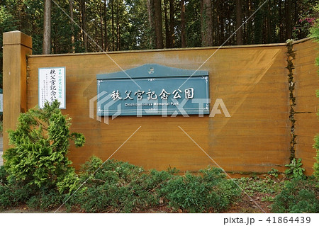 静岡県観光スポット・秩父宮記念公園正門の案内板と門標・横位置