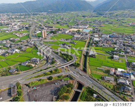 松山自動車道の川内IC付近の空撮