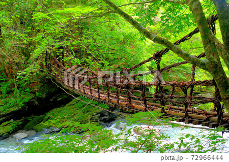 奥祖谷二重かずら橋・曽谷渓谷の美しい渓流とかずら橋の風景・女橋・四国・徳島県三好市祖谷(5)