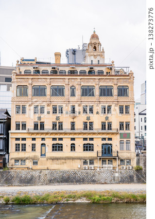 京都のまちなみ 四条河原町 東華菜館 四条大橋からの鴨川側の東面 レトロモダン建築