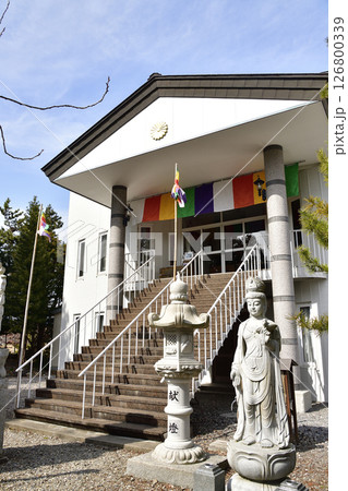 春の北海道函館市で東雲山善導院境内の風景を撮影