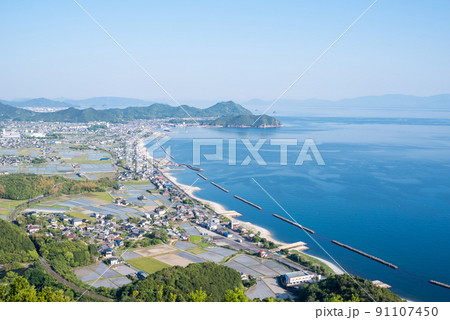 東かがわ市街並みと瀬戸内海(香川県)