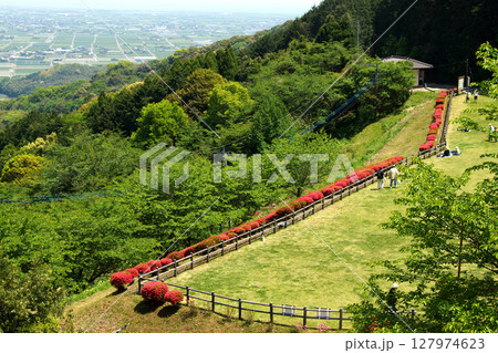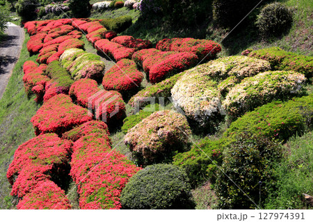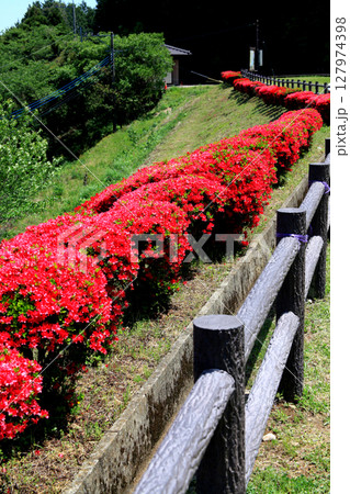 佐賀県白石町 歌垣公園 満開の赤いツツジの咲く風景