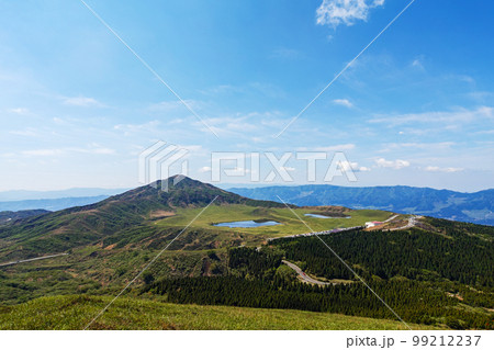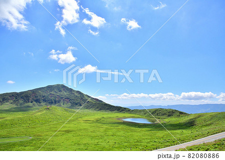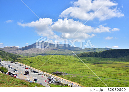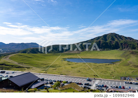 熊本県/草千里展望所から見た新緑の 阿蘇 草千里・草千里ヶ浜の風景