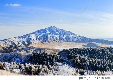 冠雪した杵島岳と烏帽子岳 冬の阿蘇の風景