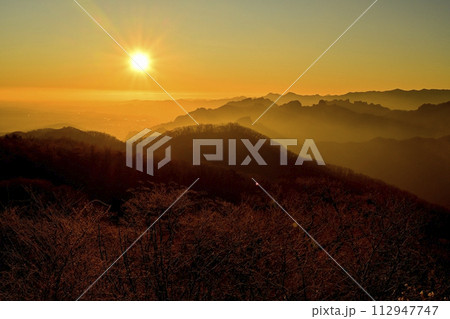 軽井沢旧碓氷峠見晴台から日の出と妙義連峰