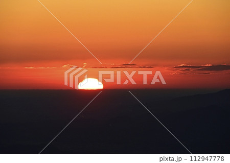 軽井沢旧碓氷峠見晴台からの日の出に妙義連峰